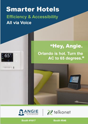 Guests simply ask Angie to set a specific temperature, switch modes to cool or heat, or set fan speeds. The HITEC demonstration will use the Angie Spark 7 and the Telkonet Touch Combo thermostat, which is designed to enhance a property's energy efficiency and features the top wireless protocols, Wi-Fi, and Bluetooth, in an all-in-one device.