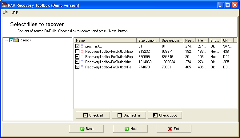 RAR Recovery Toolbox is capable of recovering data from encrypted files, password-protected files, as well as files located on portable media and on the local network. The integrated file preview module allows the user to see a list of recoverable items prior to proceeding to their recovery. A detailed recovery log at the end of each recovery session shows the amount and scope of the work done. http://www.oemailrecovery.com/howuse_rar_recovery.html