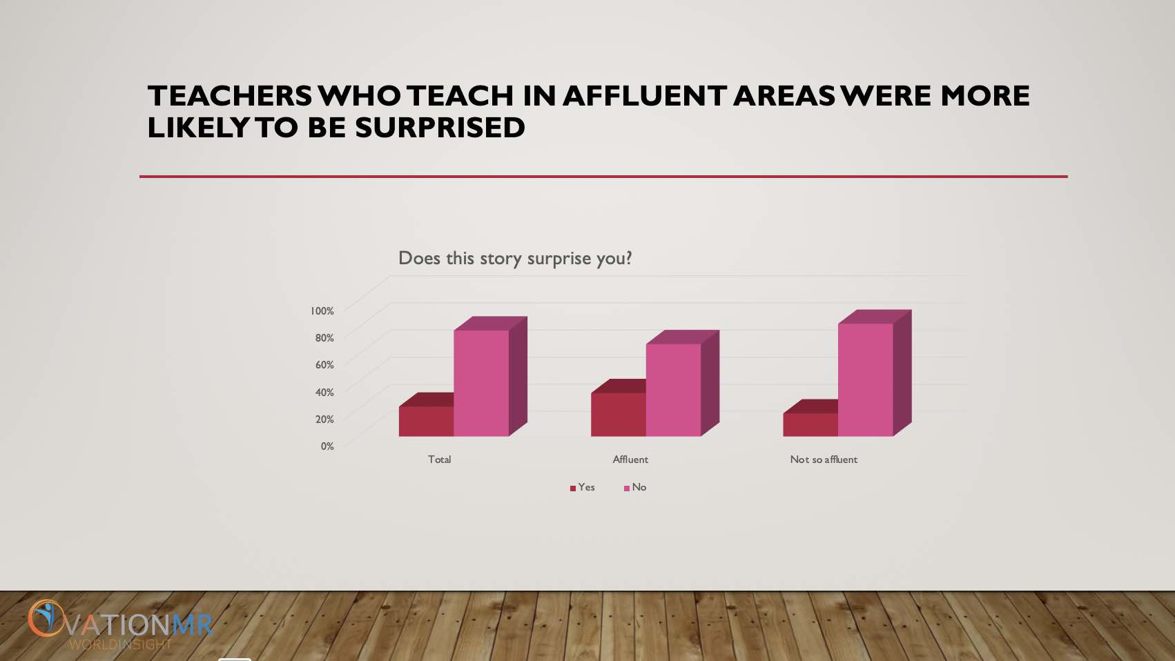 - Older teachers are more likely to have heard a great deal about the scandal than younger ones, while teachers teaching in affluent areas are less likely to have heard a great deal or good amount about it.