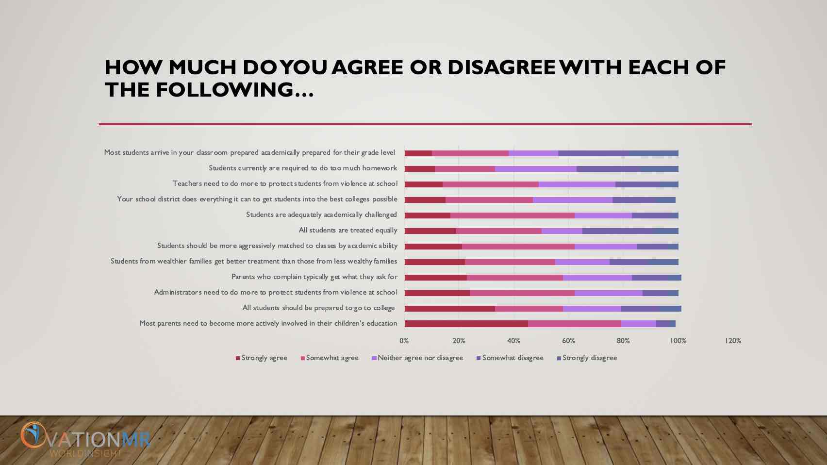 - 62% agree students should be more aggressively grouped to classes by their academic abilities.