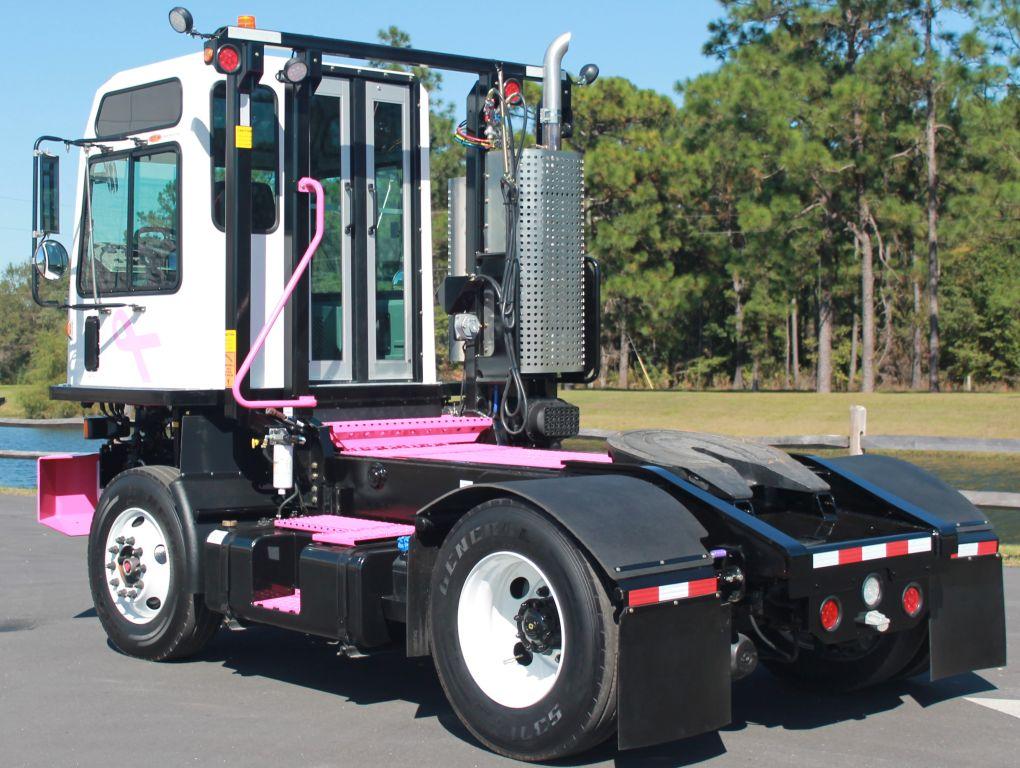 TICO (Terminal Investment Corporation) has been manufacturing its Pro-Spotter terminal tractor for retail availability since 2008. The Special Edition Breast Cancer Awareness unit is a DOT/EPA certified 2016 Pro-Spotter. It features the familiar TICO bumper but painted pink, as well as pink handrails, steps, grating, cab raise handle, and special edition pink ribbon cab decals. The special edition truck is being made available to TICO’s North American distributor network for immediate sale. A portion of the proceeds from the purchase of the special edition unit will be donated to a cancer organization of the customer’s choice, in the name of someone that has been affected by the disease, also provided by the customer.
