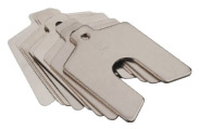 Over time stamping and punching dies begin to wear and need to be “sharpened”. The sharpening process removes a small amount of material off the face of the die. Rentapen's steel shims are placed behind the die so that the face of the die stays in exactly the same place. These shims are called, “Die-Sharpening Shims”.